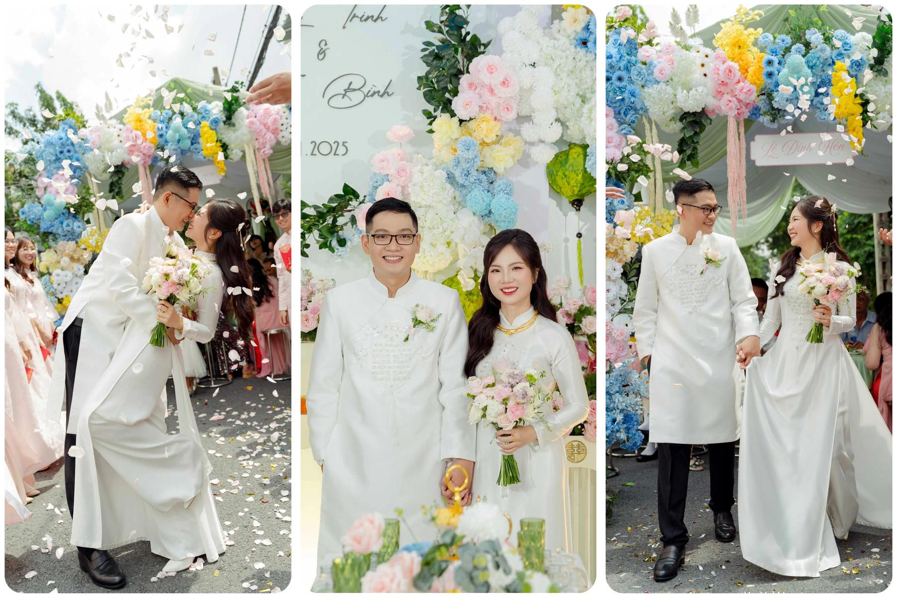 Chúc mừng hai bạn trong ngày đặc biệt này 💖 Thật vui khi được chứng kiến một chuyện tình đẹp đã đơm hoa kết trái. Chúc Trinh và Bình sẽ luôn giữ được sự yêu thương, sẻ chia và đồng hành cùng nhau trên chặng đường sắp tới. Mong cho cuộc sống sau này của hai bạn luôn ngập tràn niềm vui, tiếng cười và thật nhiều điều ngọt ngào. Chúc hai bạn mãi hạnh phúc và bên nhau trọn đời nheeee 🥰